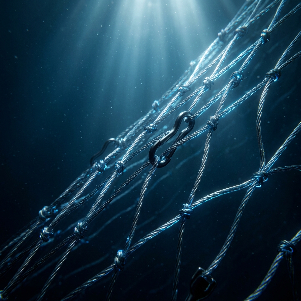 La columna vertebral de la pesca industrial. Nuestras máquinas de doble nudo garantizan una estabilidad dimensional absoluta bajo cargas extremas.